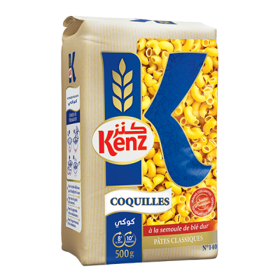 Les pâtes Coquilles Kenz (500g) sont des pâtes courtes en forme de petits coquillages, fabriquées à partir de 100% semoule de blé dur de qualité premium. Elles offrent une texture ferme et une bonne tenue à la cuisson, idéales pour les gratins, salades ou accompagnées de sauces, notamment la sauce tomate. Ces pâtes sont appréciées pour leur qualité constante et leur côté pratique au quotidien.